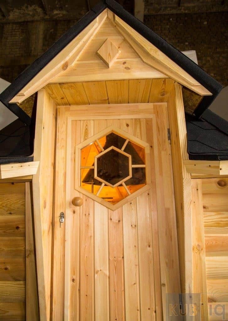 • Vrata sa šesterokutnim prozorom sa izo staklom, drvenom kvakom i bravom