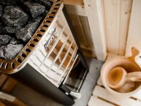 • peć na struju 6-8 kW s vanjskim ili unutarnjim kontrolama ili na drva 16 kW (peći marke Harvia), INOX dimnjak