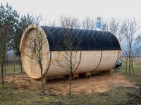 Okrugla vanjska sauna promjera 197 cm ili 224 cm, dužine 4,5 metara za 6-8 osoba