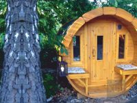 Okrugla vanjska sauna promjera 197 cm ili 227 cm, dužine 4,8 metara za 6-8 osoba