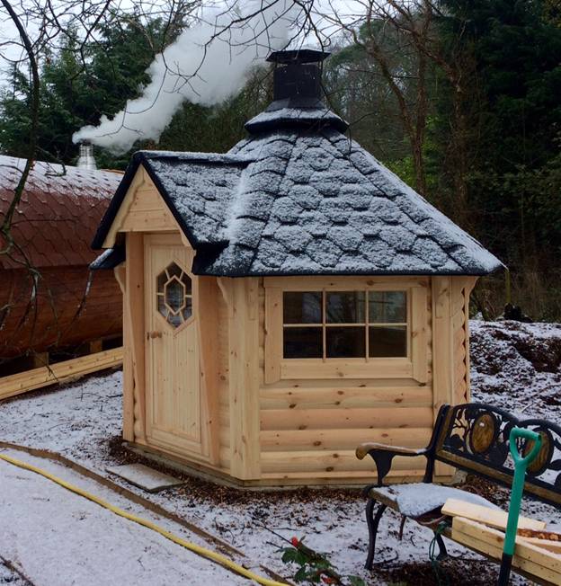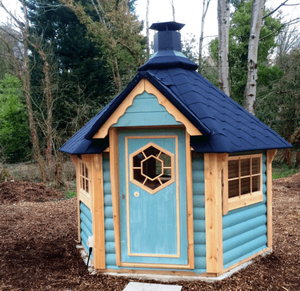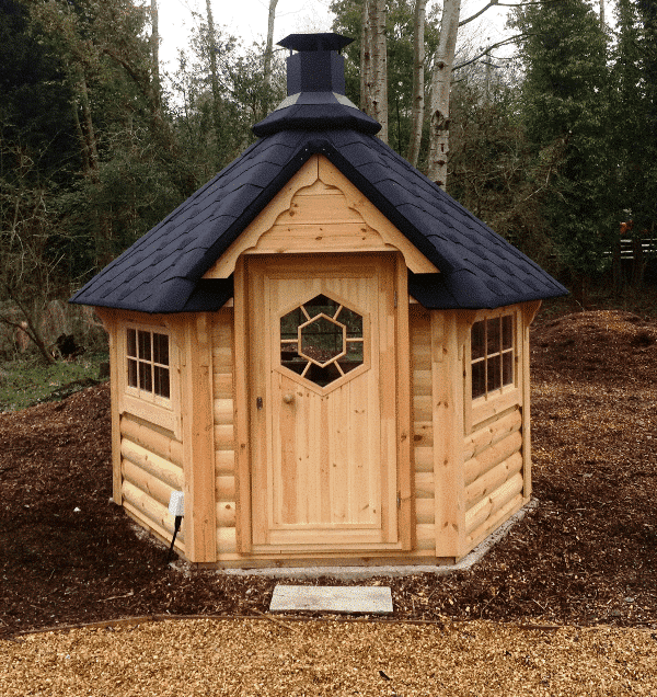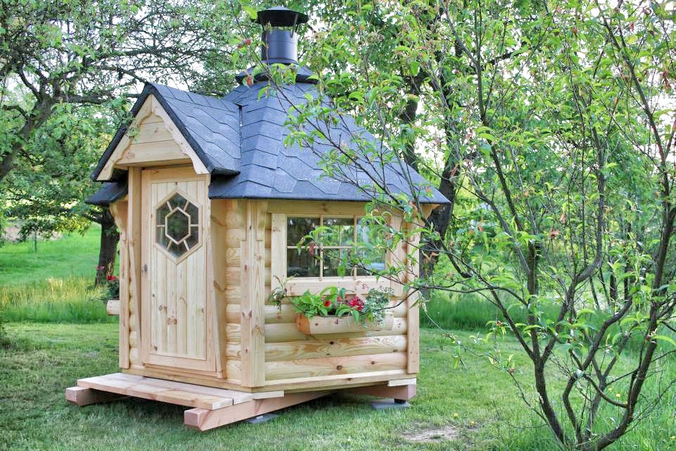Roštilj kućica šesterokutnog oblika, unutarnje površine 4,5 m² za 3 do 5 osoba